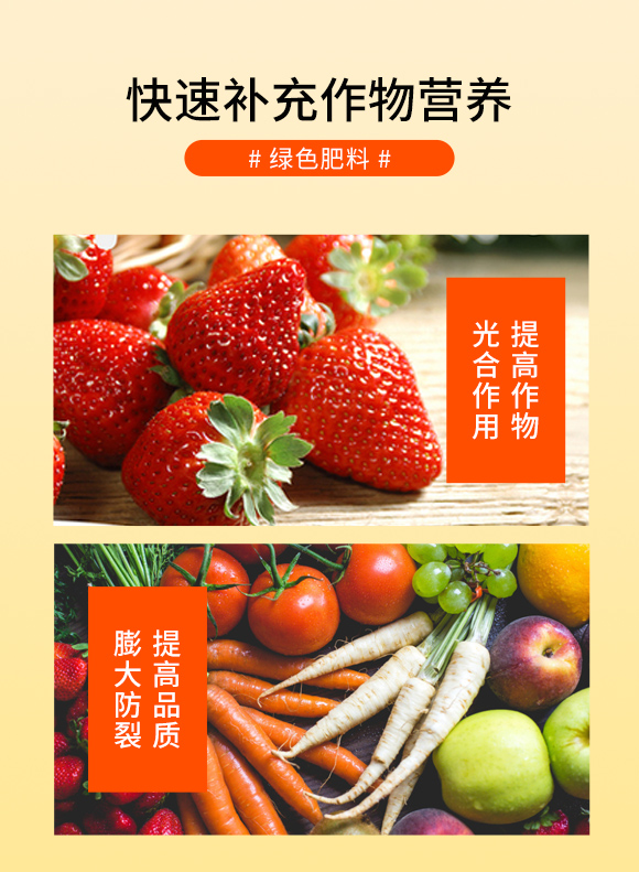 本品采用鈣鎂搭配植物所需營養(yǎng)元素,吸收快,營養(yǎng)全面,能夠快速補充作物營養(yǎng),提高作物光合作用,不含激素,針對作物抗逆性差、膨果差、品質(zhì)差等一系列問題研發(fā)的一款綠色肥料。