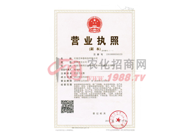 河北石家莊坤泰科技有限公司是集科技研發(fā)、生產(chǎn)、銷售為一體的現(xiàn)代化企業(yè),專門從事新型農(nóng)藥的研發(fā)、生產(chǎn)和銷售的高新技術(shù)企業(yè)。公司依托于農(nóng)業(yè)大學及國外多名農(nóng)學專家,擁...