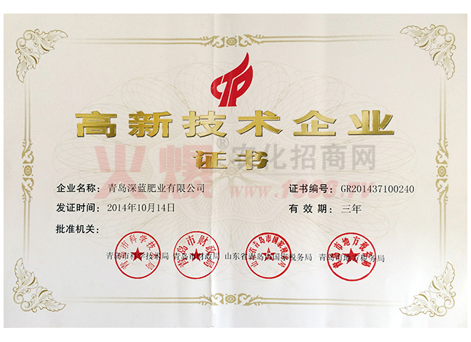 青島深藍(lán)肥業(yè)有限公司成立于2009年,是一家利用擁有自有知識(shí)產(chǎn)權(quán)的“溫和中性液體環(huán)境生物酶提取技術(shù)”從天然可食用級(jí)海帶中(不同于滸苔)提取海藻生物精華素,復(fù)配制備海藻肥的高新技術(shù)企業(yè)。